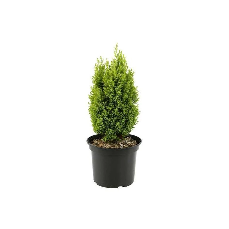 De porte cónico regular, con muchos troncos, y compacto. Sus ramas crecen verticalmente, con un follaje muy denso de color azul verdoso. Muy utilizado para composiciones, en rocallas, jardineras, terrazas y como ejemplar aislado.