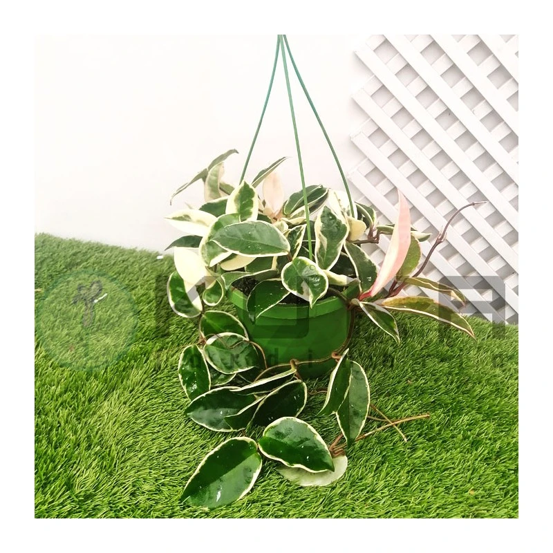 Hoya Krimson queen es un planta trepadora de flores, perfumadas, blancas con el centro rojo.